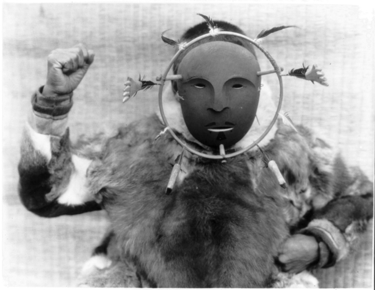 Selon Ann Fienup-Riordan3  ce type de masque représente dans la tradition Yup’ik le saumon ayant sauté hors de l’eau et tombé sur la berge pour prendre la forme d’une personne vivante.